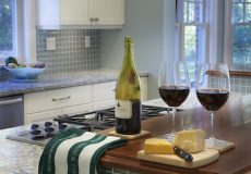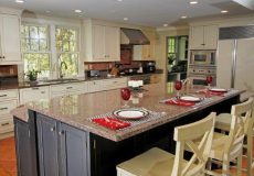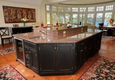 - Enlarged island with a solid cherry countertop on the second tier and a solid and a Cambra quartz countertop on the first tier