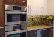 - Two separate ovens built into base cabinetry with the primary oven raised for better back ergonomics.