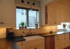 This early 20th century West Hartford colonial was a perfect candidate for a major remodel. The existing kitchen was inconvenient and disjointed, with the sink and dishwasher on the far opposite sides of the space, in opposing corners. The powder room door face directly into the kitchen and was exceedingly undesirable by the homeowners. There was almost no usable countertop and very poor storage space. It was dingy and had not been updated in many many years. The big challenge were the numerous doors and poor traffic flow. The materials used in this kitchen are as follows: